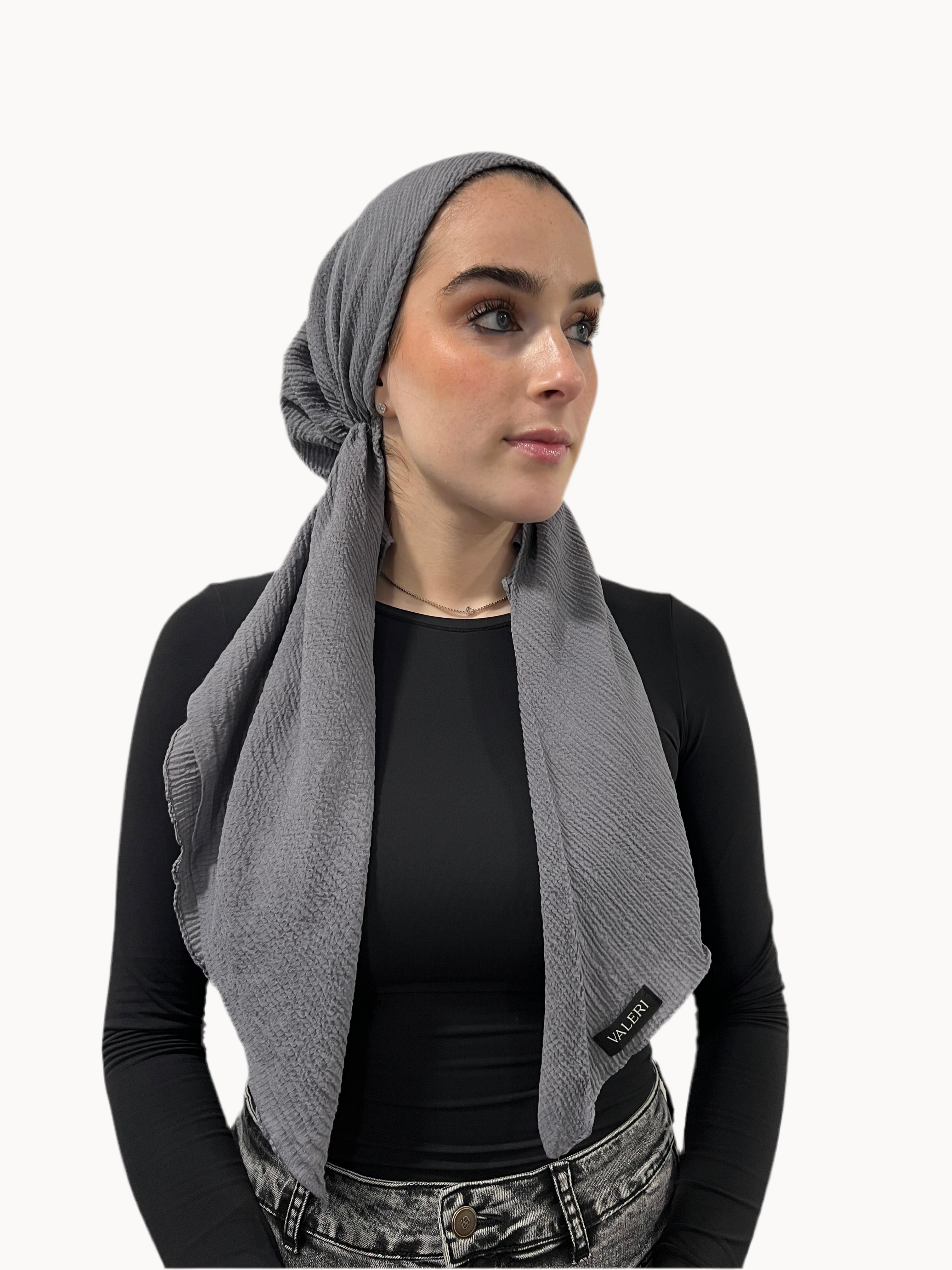 Our community’s absolute favorite — and for good reason. This scarf is crafted from the softest crinkle-textured fabric that drapes beautifully and adds natural dimension around the face. Inside, we’ve sewn in our signature velvet headband for a secure, slip-free fit, plus an adjustable toggle so you can customize the sizing to your comfort.