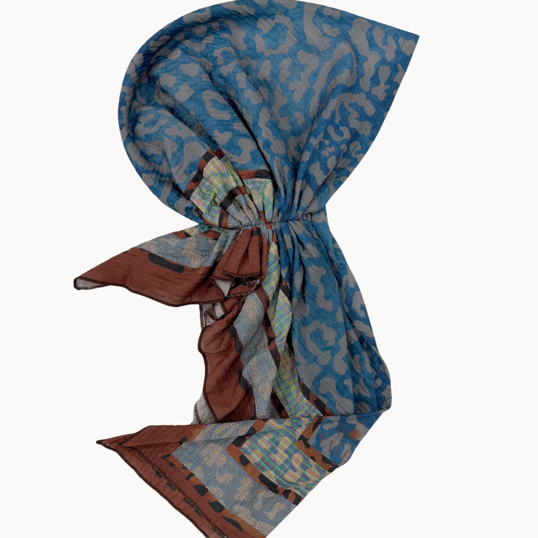 Layers of intricate borders frame a soft indigo leopard print for a bold yet refined look. Detailed, dimensional, and full of depth, this design mixes cool tones and subtle pattern work in a way that feels both classic and modern. Made on our new airy crinkle fabric with just the right amount of texture. Comfortable, lightweight, and perfect for all seasons.