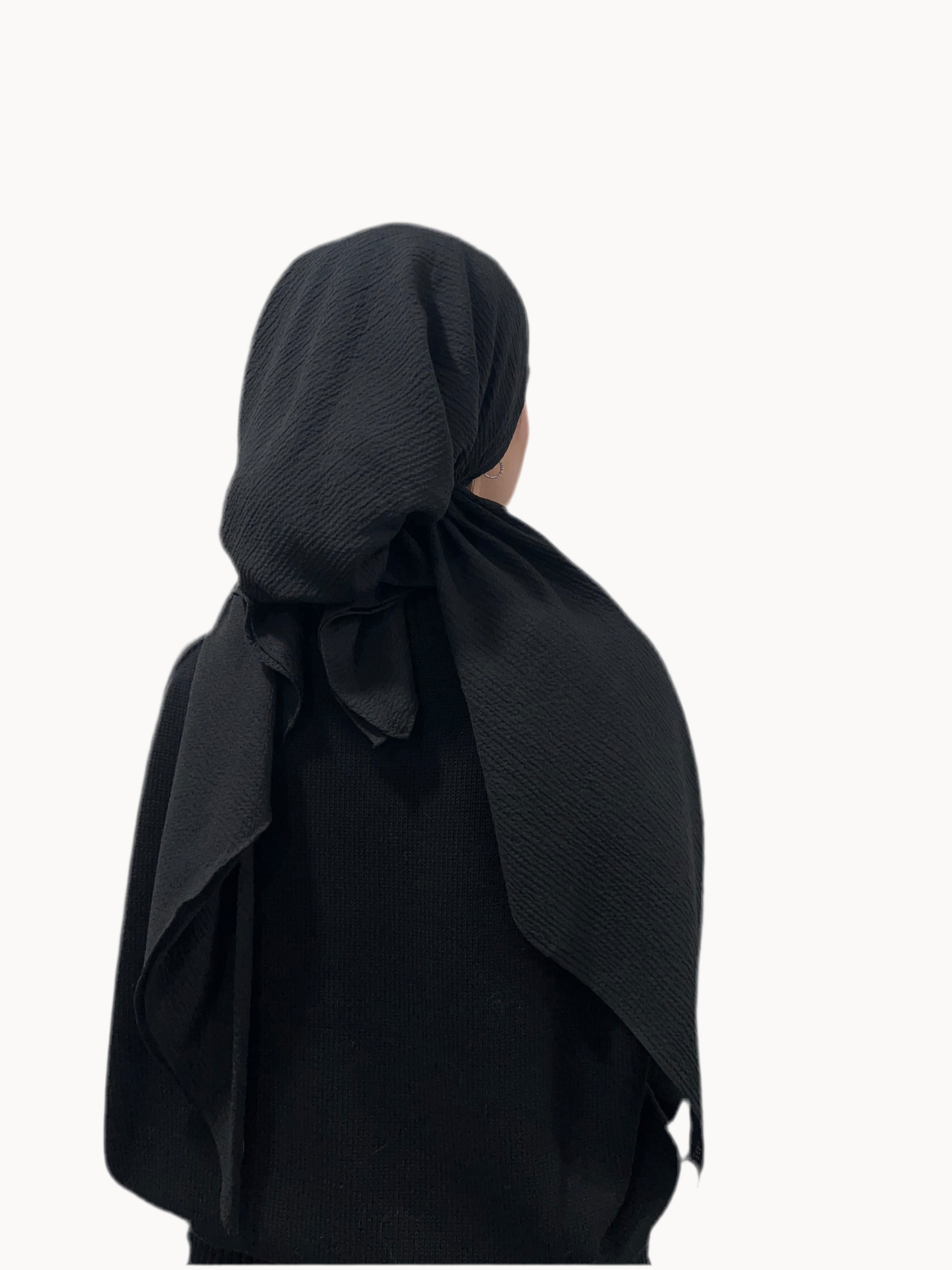 • Our community’s absolute favorite — and for good reason. This scarf is crafted from the softest crinkle-textured fabric that drapes beautifully and adds natural dimension around the face. Inside, we’ve sewn in our signature velvet headband for a secure, slip-free fit, plus an adjustable toggle so you can customize the sizing to your comfort.