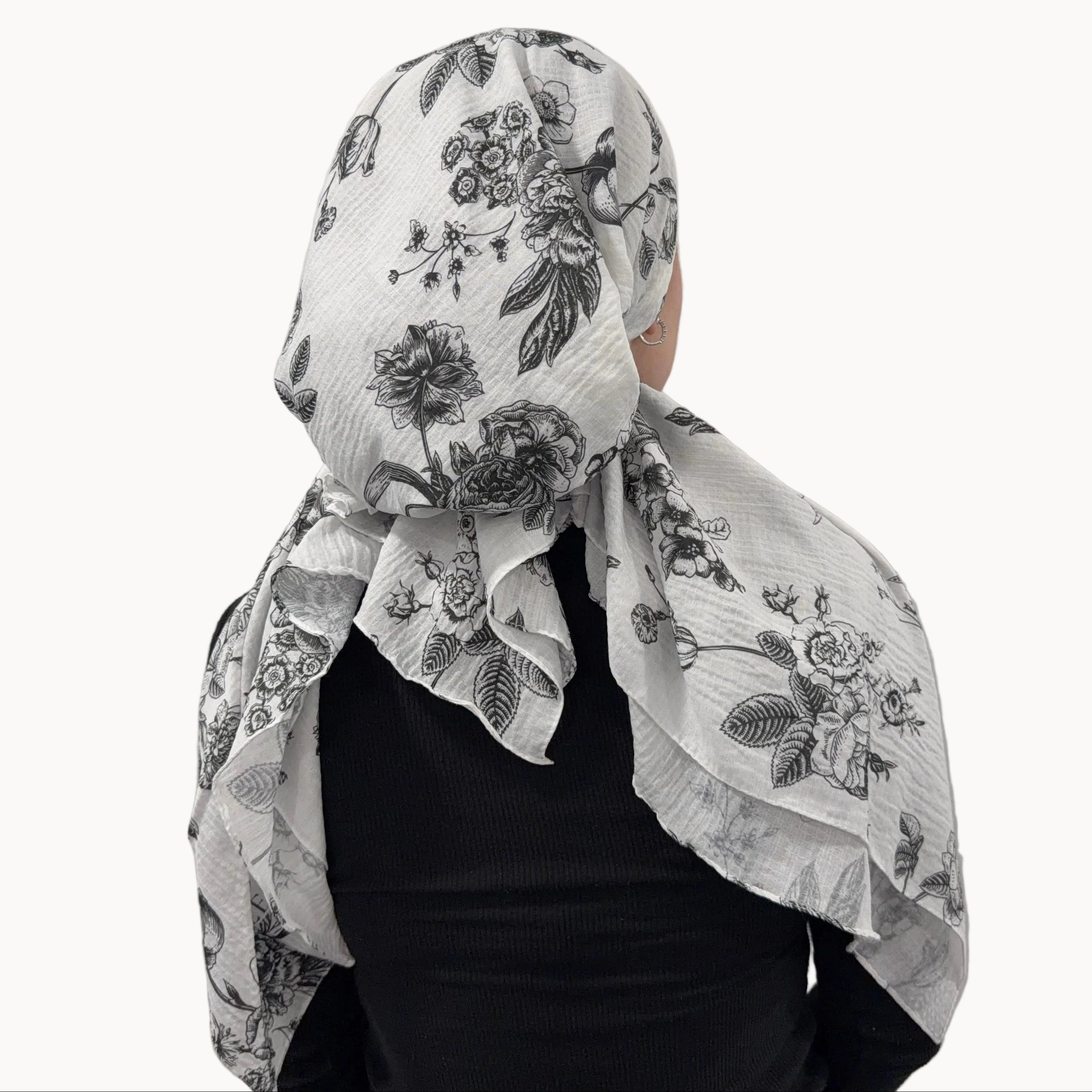 • Intricate black florals scattered across a white backdrop, with a French Victorian elegance that feels both romantic and timeless.