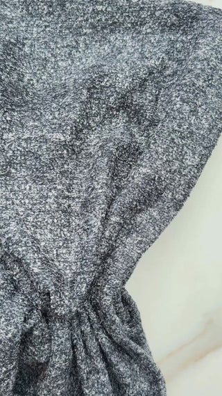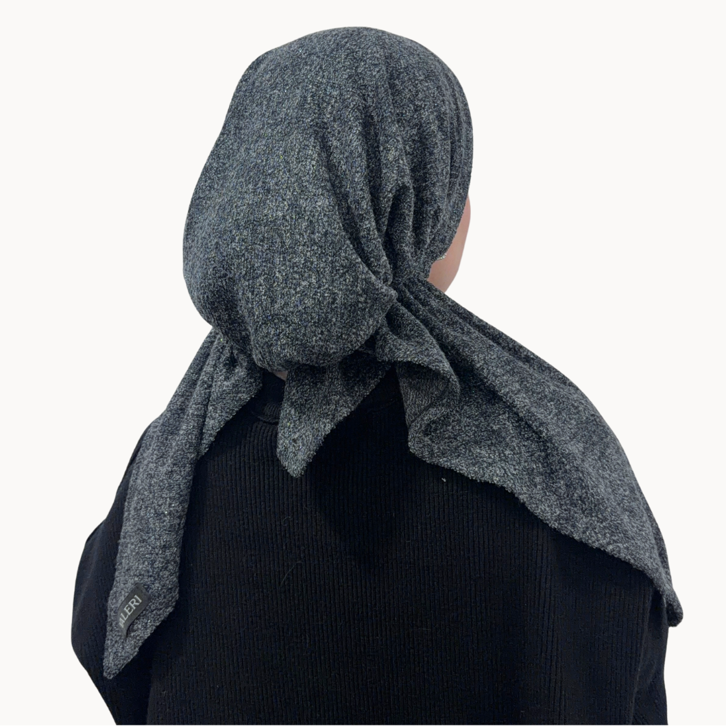 A mix of grays and sparkling accents, this scarf is made from a soft winter fabric that will keep you cozy on cooler days.