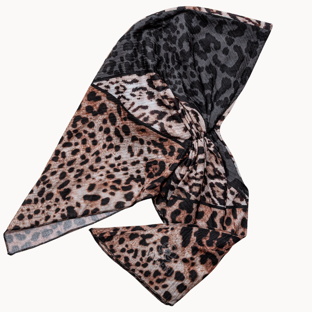 A combination of mixed leopard prints in a bold geometric layout. Statement-making and detailed, it blends multiple scales and tones for a striking, modern look. Made on our new airy crinkle fabric with just the right amount of texture. Comfortable, lightweight, and perfect for all seasons.