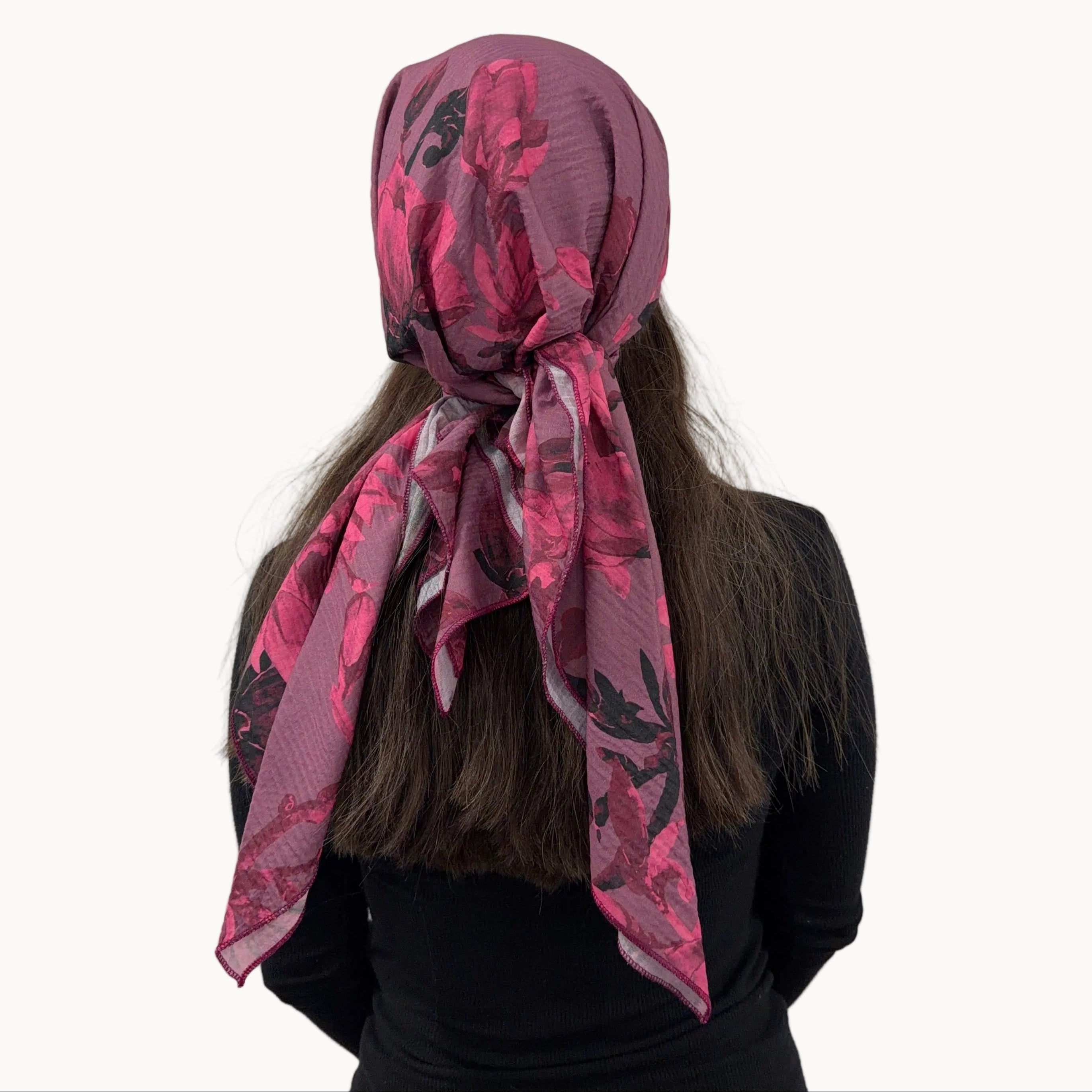 Berry-toned magnolia blooms on a soft dusty mauve background. Made on our new airy crinkle fabric with just the right amount of texture. Comfortable, lightweight, and perfect for all seasons.
