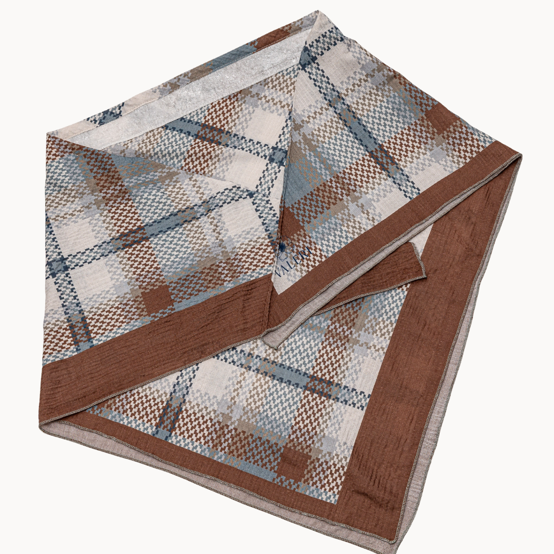 Soft birch-toned plaid in shades of blue, brown, and cream. Made on our new airy crinkle fabric with just the right amount of texture. Comfortable, lightweight, and perfect for all seasons.